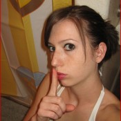 This young Freckled Teen strips off her white bikini top to show you her tiny pink nipples.
